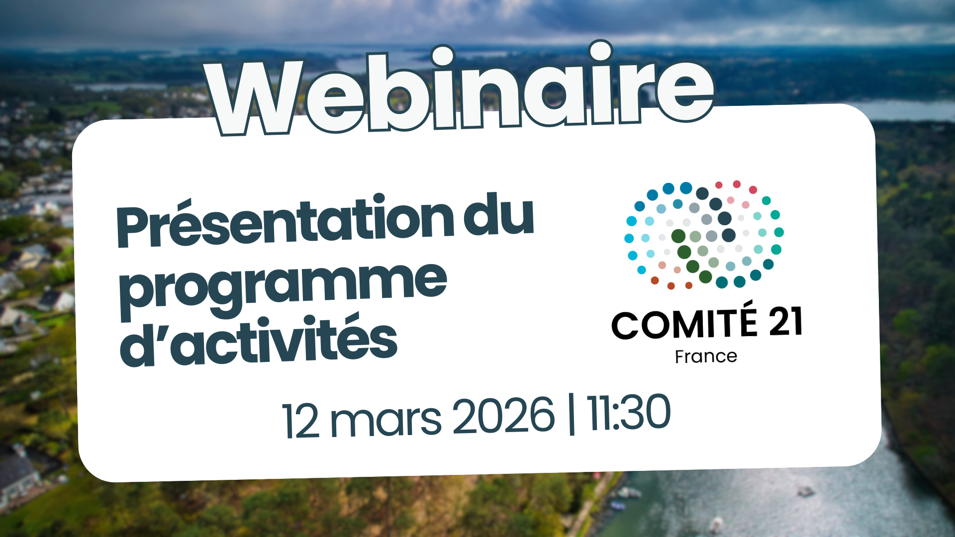 En 2026 le Comité 21 bouge ! Venez assister à la présentation du nouveau programme 2026 et à l’ouverture des 4 nouveaux établissements territoriaux de Comité 21 (Sud Ouest, Nord Ouest, Est, Sud Est). Le Comité 21 adopte pour la période 2026–2027 un programme d’activités ambitieux, conçu pour accompagner l’accélération des transitions dans les territoires. Ce programme s’articule autour des priorités stratégiques du Comité 21 — climat, ressources, vivant — et vise à renforcer l’appui aux collectivités, aux entreprises, aux réseaux associatifs et aux établissements d’enseignement et de recherche. Au programme : Mettre en réseau les acteurs avec les nouvelles rencontres entre décideurs Diffuser les connaissances avec 1 nouveau centre de ressources et des analyses prospectives Incuber des projets avec le nouveau Parcours adaptation au changement climatique Une occasion de mieux connaitre les nouvelles orientations et d’échanger avec les équipes Comité 21. Lien d’inscription https://forms.gle/vAC99yU1TkSymxmb6 📅 12 mars 2026, 11:30 | en ligne